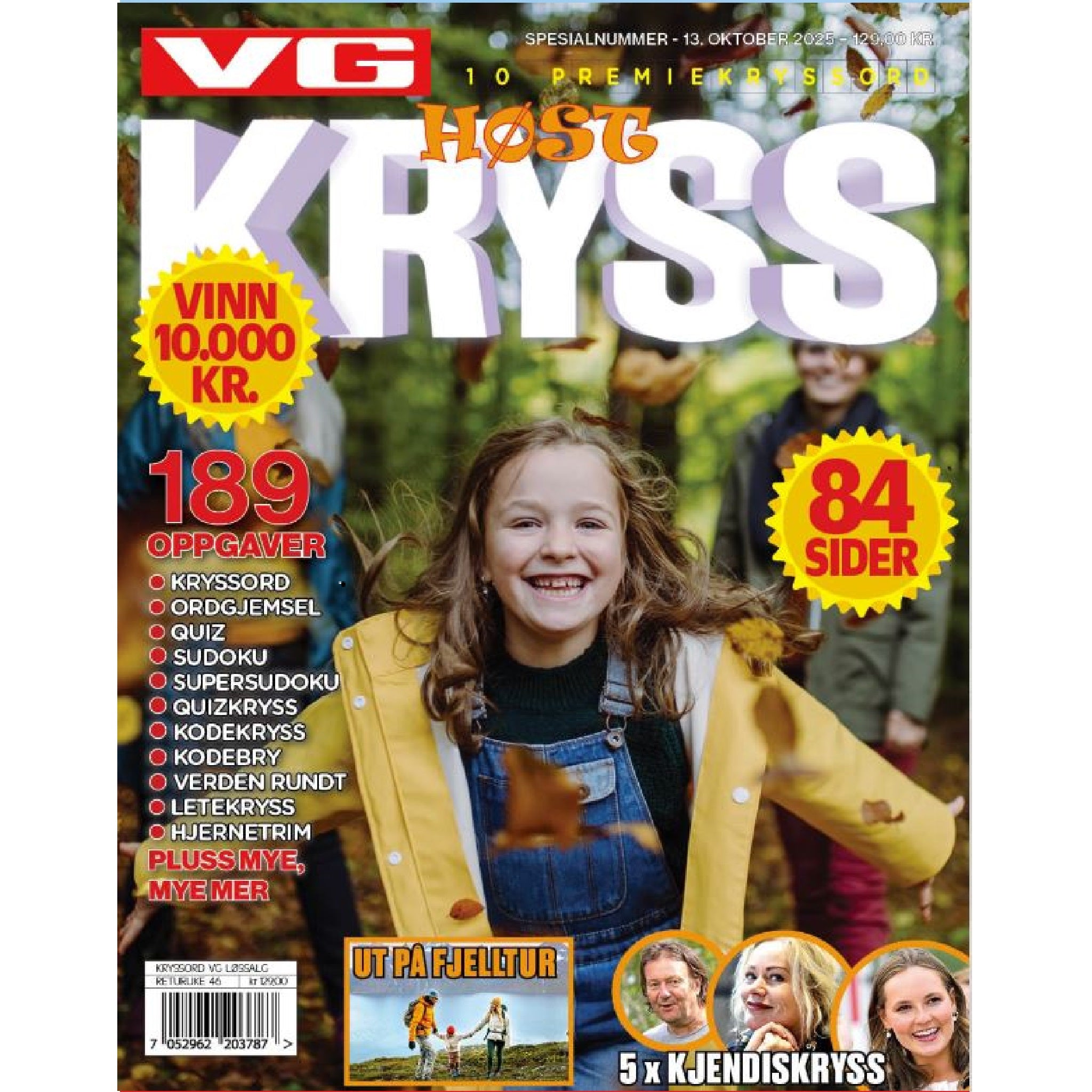 84 sider med kryssord, ordjakt, sudoko, kodekryss, bildekryss og quiz. Ulike oppgaver som skal utfordre deg utover hele høsten.